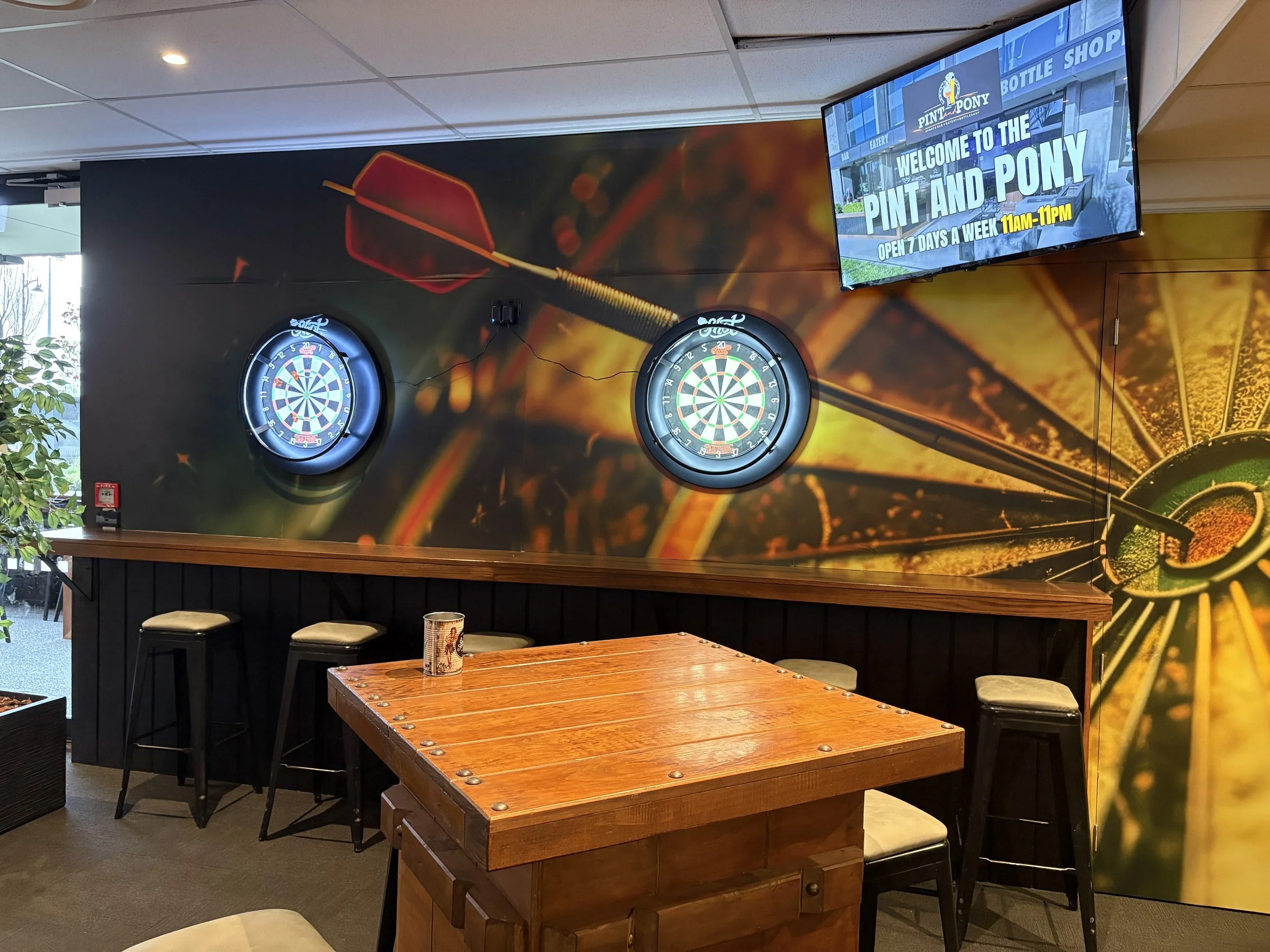 We’ve got wall-to-wall sports coverage, ice-cold pints, great wine selection and a menu full of pub favorites done right. Whether you’re here to watch the big match, throw a round of darts, or just unwind with friends, there’s always something happening at Pint and Pony.